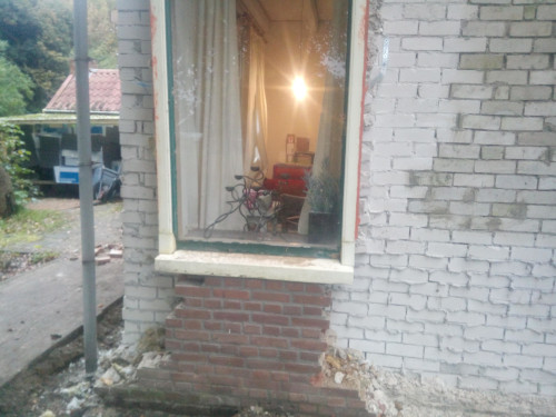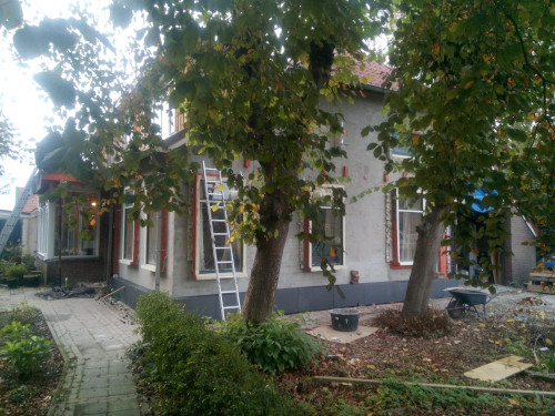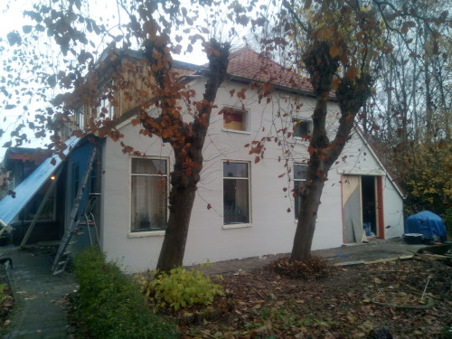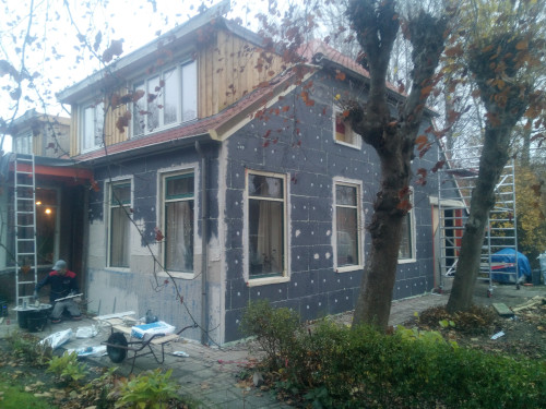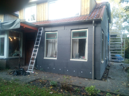 - buitengevel verwijderd en vervangen voor EPS isolatie (22 tot 28cm dik), wat daarna gestuct werd